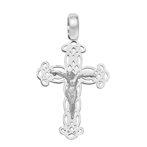 Celebrate faith and heritage with our Sterling Silver Celtic Crucifix Cross. This beautifully crafted design features an intricate Celtic pattern throughout, symbolizing tradition and spirituality, with a detailed Jesus figure atop the cross. The combination of the Celtic design and the crucifix creates a meaningful and timeless piece. The cross includes a sturdy attachment ring, and an optional chain is available to complete the look if desired. Perfect for everyday wear or as a thoughtful gift, this sterling silver crucifix is a striking representation of devotion and cultural pride.