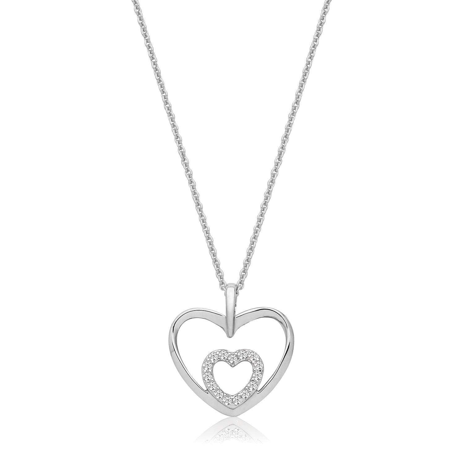 Sterling Silver Double Heart Shape Plain & CZ Pendant & Chain – Rhodium Plated