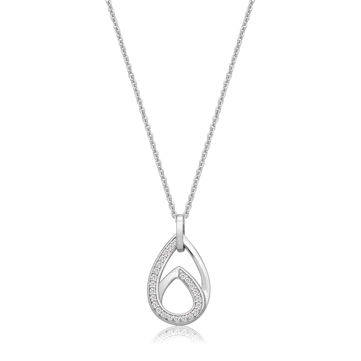 Sterling Silver Interlinked Double Pear Shape Plain & CZ Pendant & Chain – Rhodium Plated