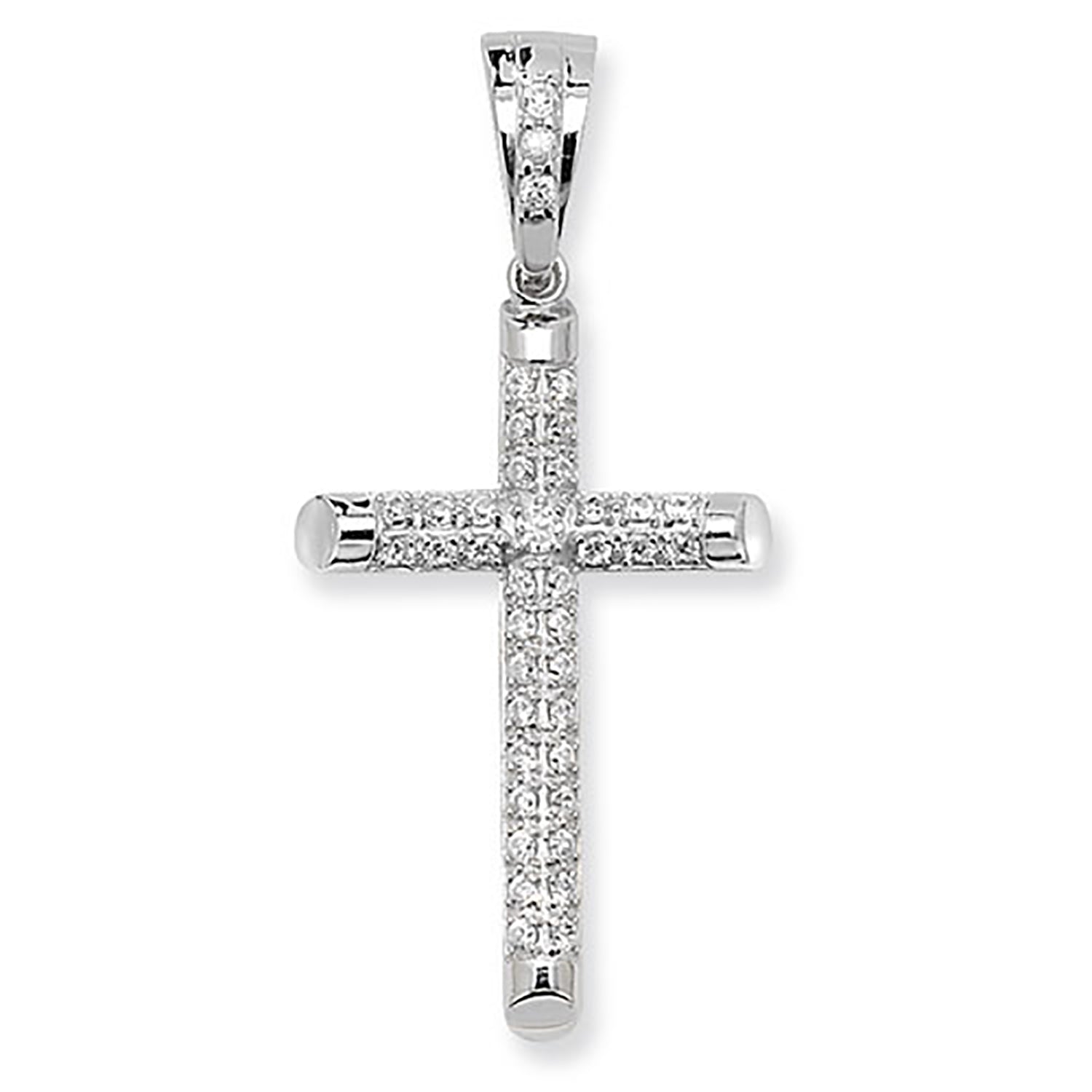 Sterling Silver Pavé Set Cubic Zirconia Cross Pendant Large (Optional Chain)