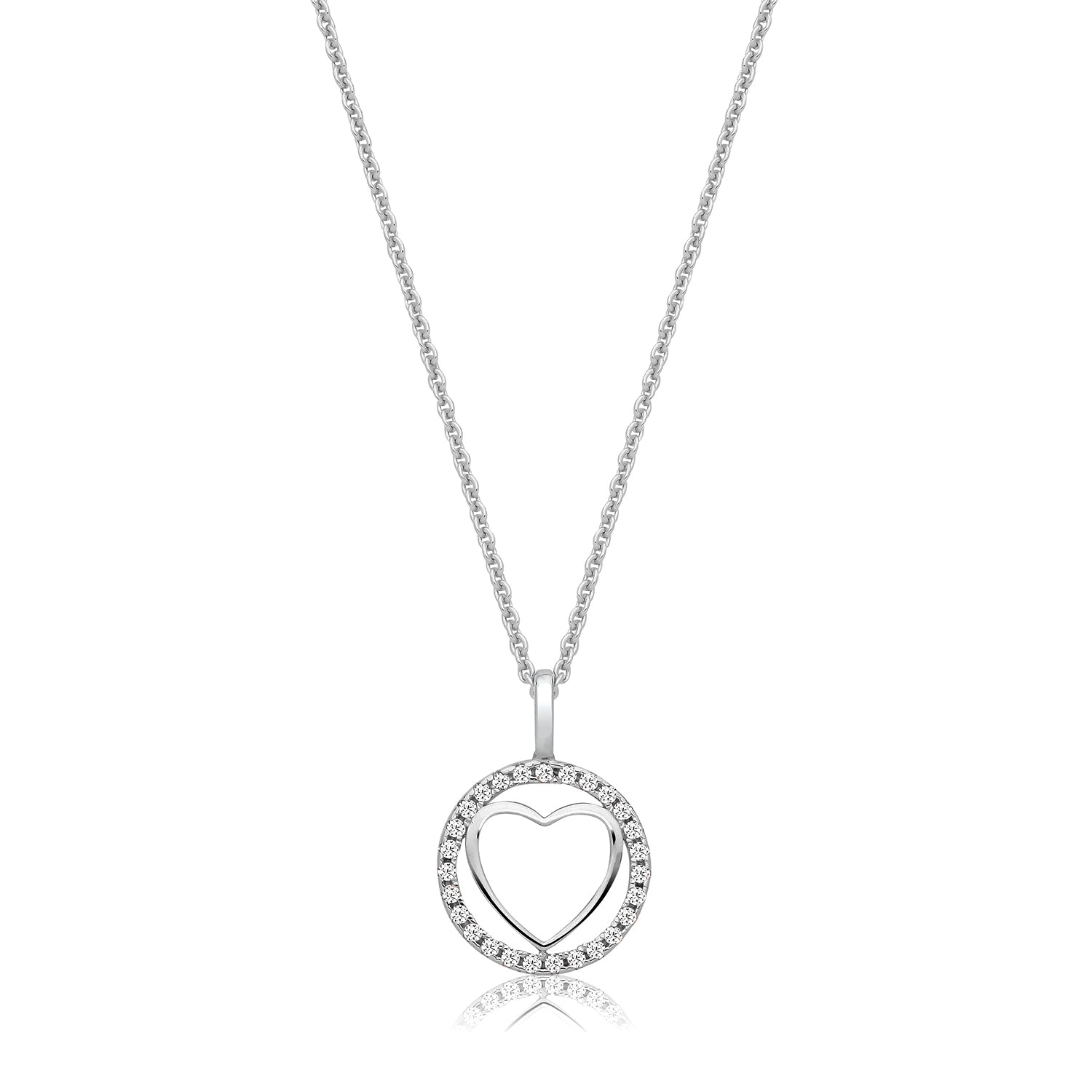 Sterling Silver Plain Heart Within Round Halo Style CZ Pendant & Chain – Rhodium Plated.
