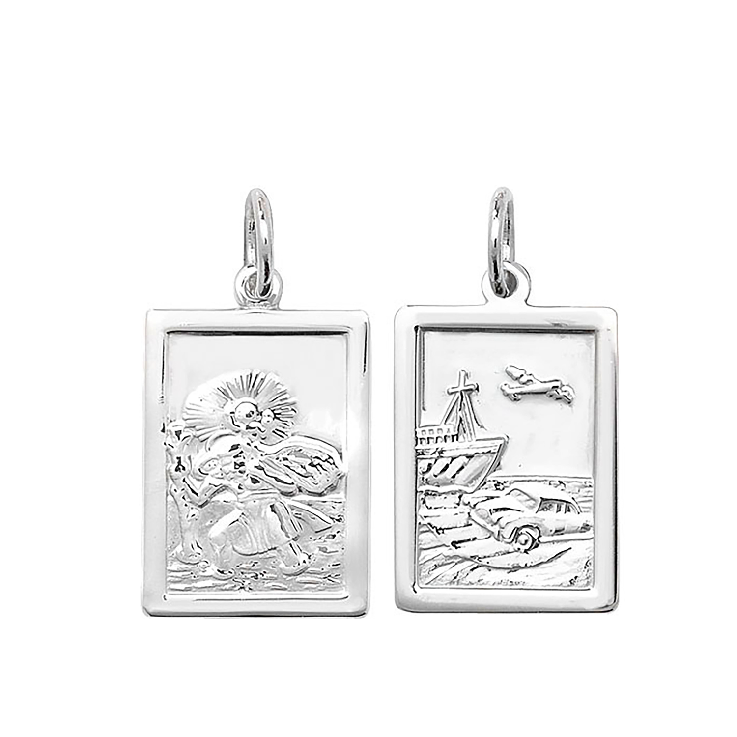 Sterling Silver St Christopher Double-Sided Oblong Pendant (Optional Chain)