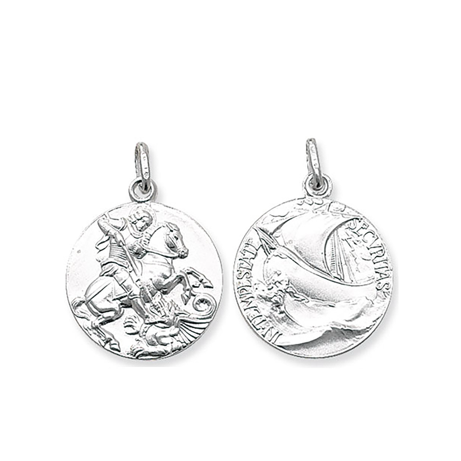 Sterling Silver St George Double-Sided Round Pendant Large (Optional Chain)