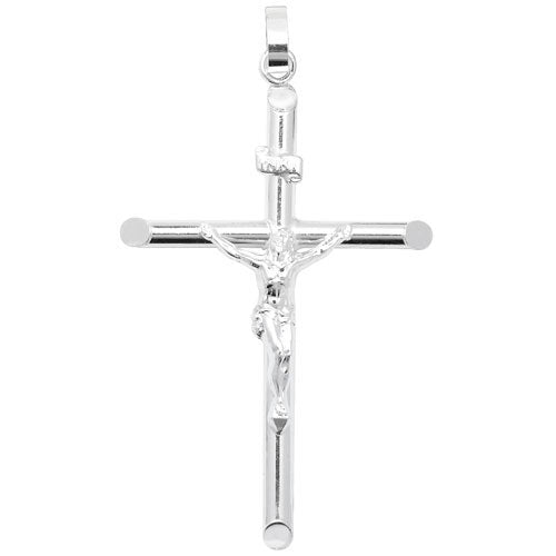 Sterling Silver Tube Crucifix (Optional Sizes and Chain)