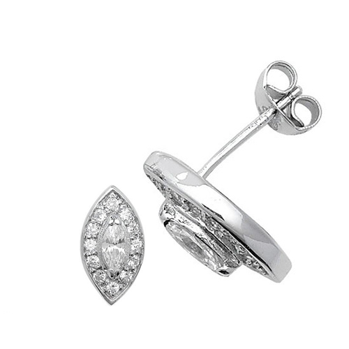 Silver Marquise Cubic Zirconia Halo Stud Earrings (8mm)