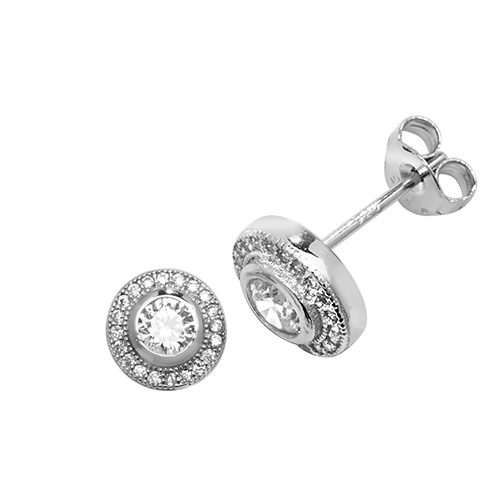 Silver Round Cubic Zirconia Halo Stud Earrings (8mm)