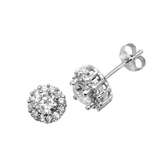 Silver Round Claw Set Cubic Zirconia Halo Stud Earrings (9mm)