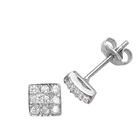 Silver Square Curved Cubic Zirconia Stud Earrings (7mm)