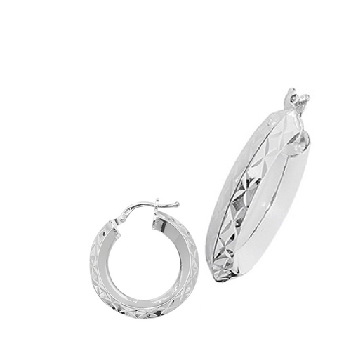 Add a brilliant touch to your jewellery collection with our sterling silver 15mm diamond cut hoop earrings. Expertly crafted from high-quality 925 sterling silver, these hoops feature a striking diamond-cut design that creates a stunning, textured effect. The facets of the diamond cut reflect the light beautifully, giving the earrings a radiant sparkle that catches attention from every angle.