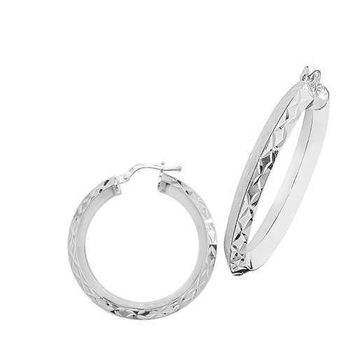 Sterling Silver 25mm Diamond Cut Hoop Earrings