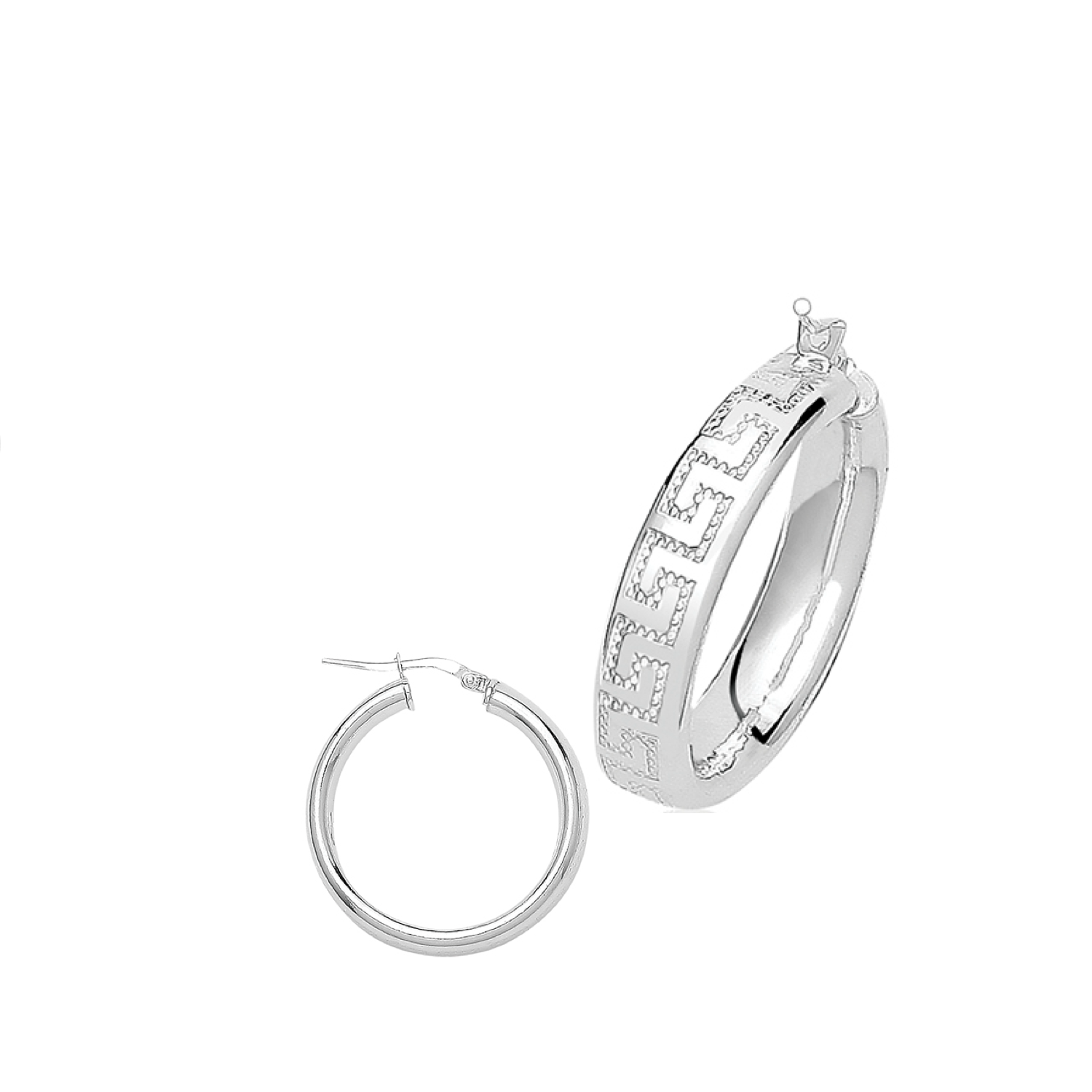 Sterling Silver 25mm Greek Key Hoop Earrings