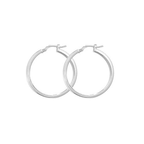 Sterling Silver 25mm Plain Square Hoop Earrings