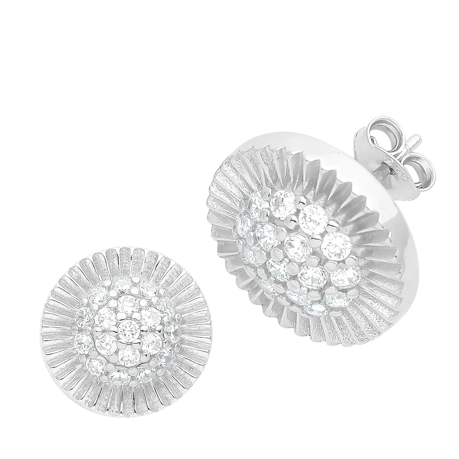 Sterling Silver Cubic Zirconia Cluster Stud Earrings (14mm)