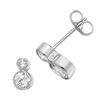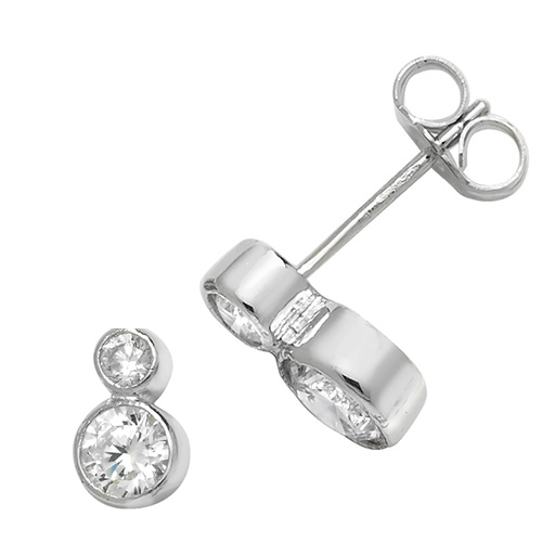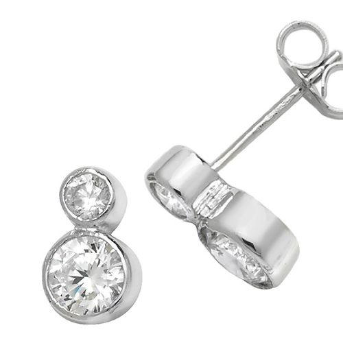 Sterling Silver Cubic Zirconia Double Drop Rub Over Set Studs (6mm)