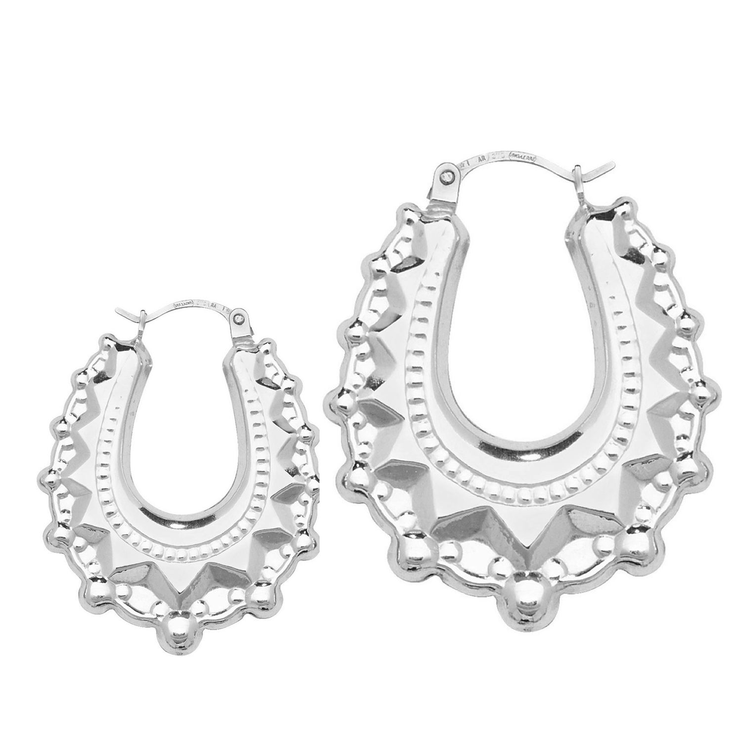 Make a statement with these large sterling silver Creole hoop earrings, a bold and elegant addition to any jewellery collection. Crafted from premium sterling silver, these classic hoops offer a sleek, polished finish that complements any style. Their large size creates an eye-catching effect, perfect for adding glamour to both casual and formal looks. Designed with a secure latch-back closure, these earrings are comfortable enough for all-day wear while adding a touch of sophistication.
