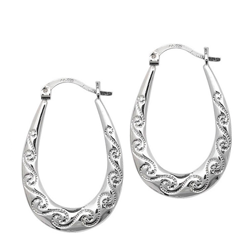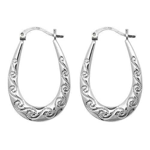 Sterling Silver Oval Milgrain Swirl hoop Earrings (20mm)