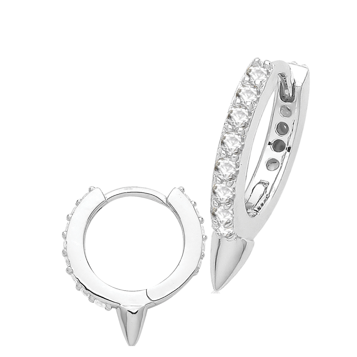 Sterling Silver Single Spike Cubic Zirconia hoop Earrings (12mm)