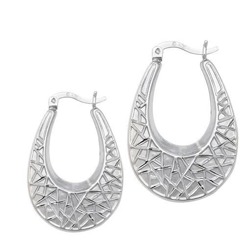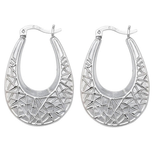 Sterling Silver Spider Web Oval Hoop Earrings (20mm)