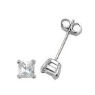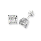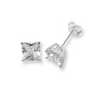 Sterling Silver Square Claw Set Cubic Zirconia Studs (Various Sizes Available)