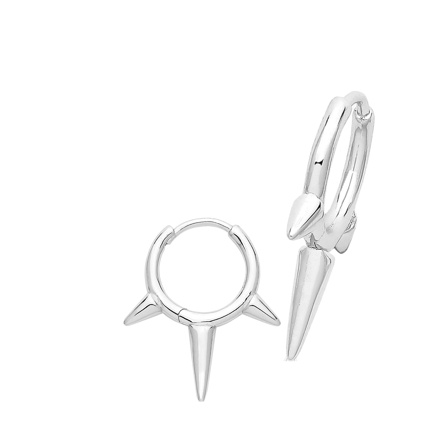 Sterling Silver Triple Spike Hoop Earrings (12mm)