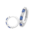 Enhance your look with these elegant sterling silver white brilliant cut and blue baguette cut cubic zirconia hoop earrings. Crafted from fine sterling silver, these hoops showcase a captivating mix of brilliant white and deep blue cubic zirconia stones. The white brilliant-cut stones add timeless sparkle, while the striking blue baguette-cut stones provide a pop of vibrant colour, creating a perfect balance of classic elegance and modern flair. Lightweight and comfortable, these hoops are hypoallergenic and tarnish-resistant, making them ideal for everyday wear or elevating special occasion outfits with a touch of sophistication.