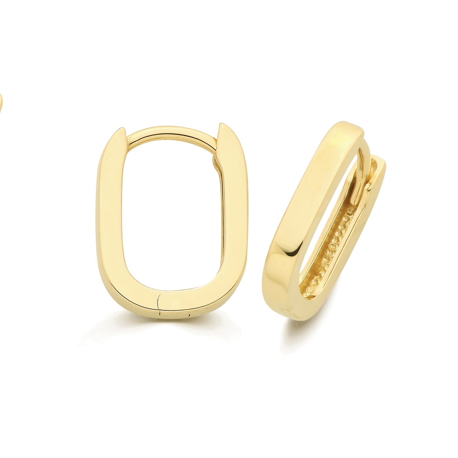Designed with a secure hinged clicker fastening, these hoops are easy to wear and comfortable for all-day use. Measuring 10.6mm x 13.8mm, they offer a subtle yet distinctive profile — perfect for everyday styling or layering with other gold earrings.