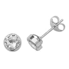 9ct White Gold Round Rub Over Cubic Zirconia Studs (Various Sizes Available)