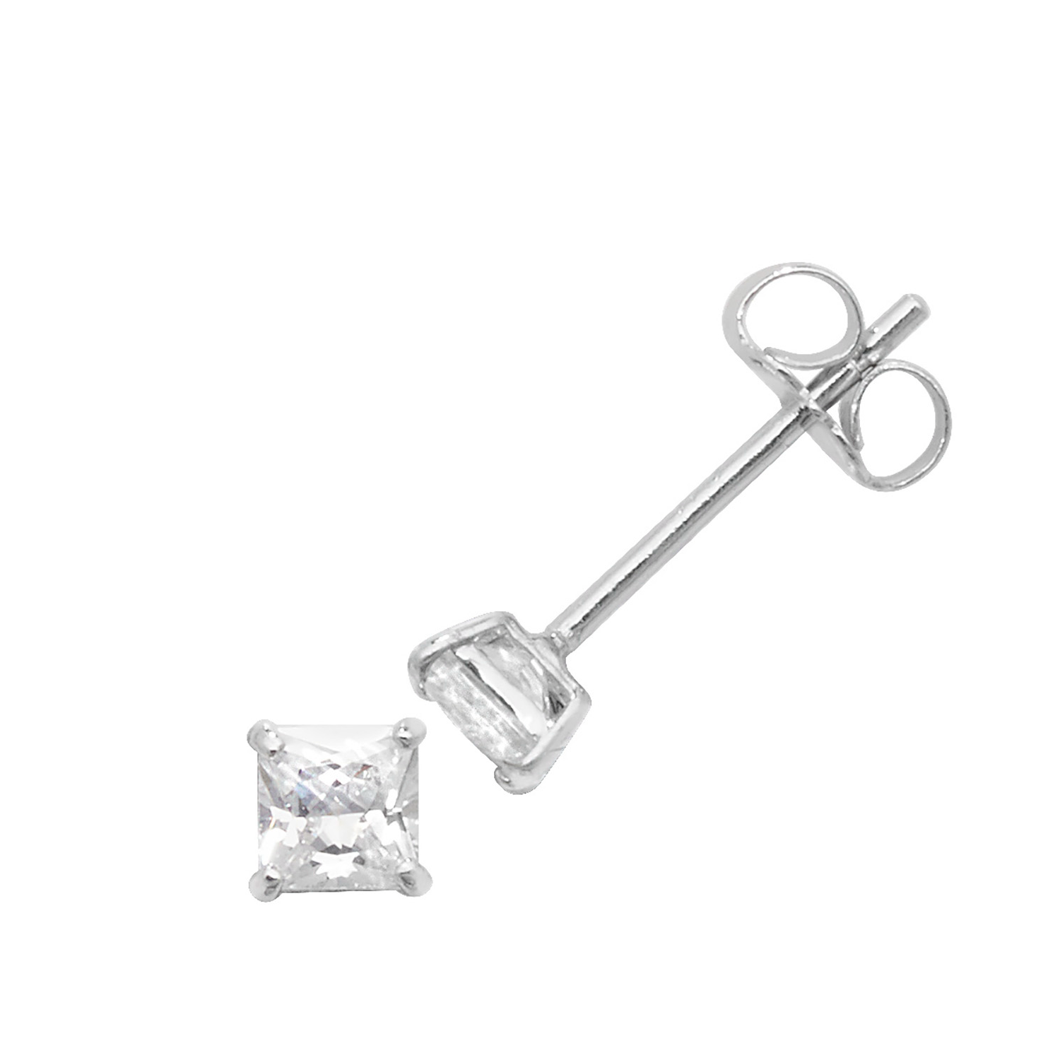 9ct White Gold Square Cubic Zirconia Small Stud Earrings