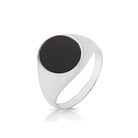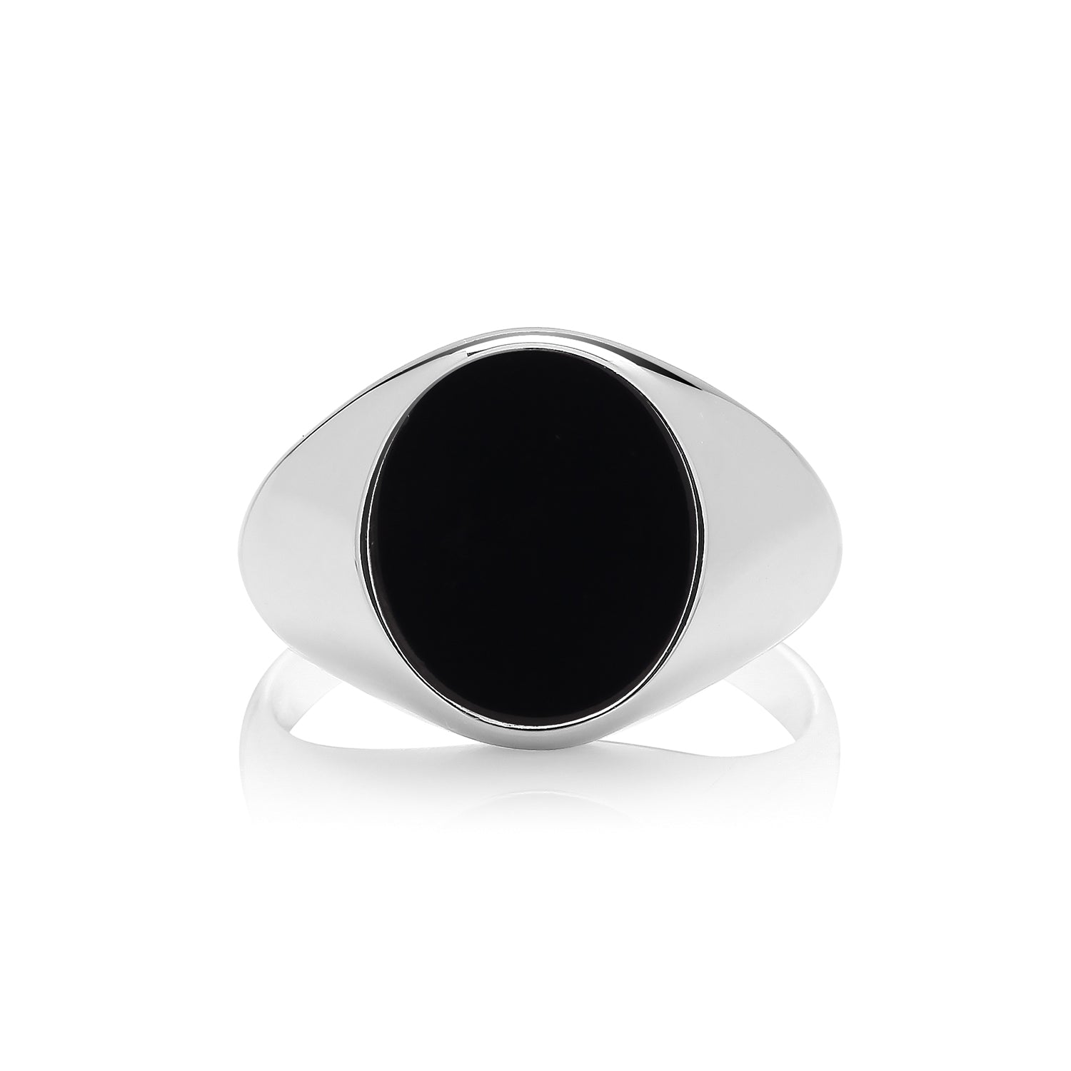 Sterling Silver Black Onyx Oval Signet Ring – 14x12mm Rhodium Plated