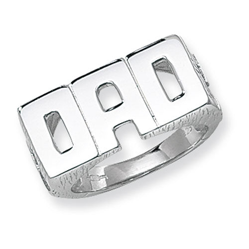 Celebrate fatherhood with this Sterling Silver Men's Dad Ring, a meaningful and stylish tribute to the special bond between a father and his loved ones. Crafted from high-quality 925 sterling silver, this bold ring features the word "DAD" prominently displayed, symbolising strength, love, and devotion. With its polished finish and timeless design, it’s the perfect gift for birthdays, Father’s Day, or any occasion to show appreciation. A sentimental yet masculine piece, this ring is a treasured addition to any dad’s jewellery collection.
