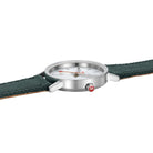 The eco-conscious green textile strap, crafted from recycled PET bottles and lined with soft, sustainable cork, brings a refreshing burst of colour while offering lightweight comfort for everyday wear. Durable and practical, the watch is fitted with a hardened mineral crystal and powered by a precise Swiss quartz Ronda 763E movement, ensuring reliable performance. With 30 m water resistance, it is designed to meet the demands of daily life.