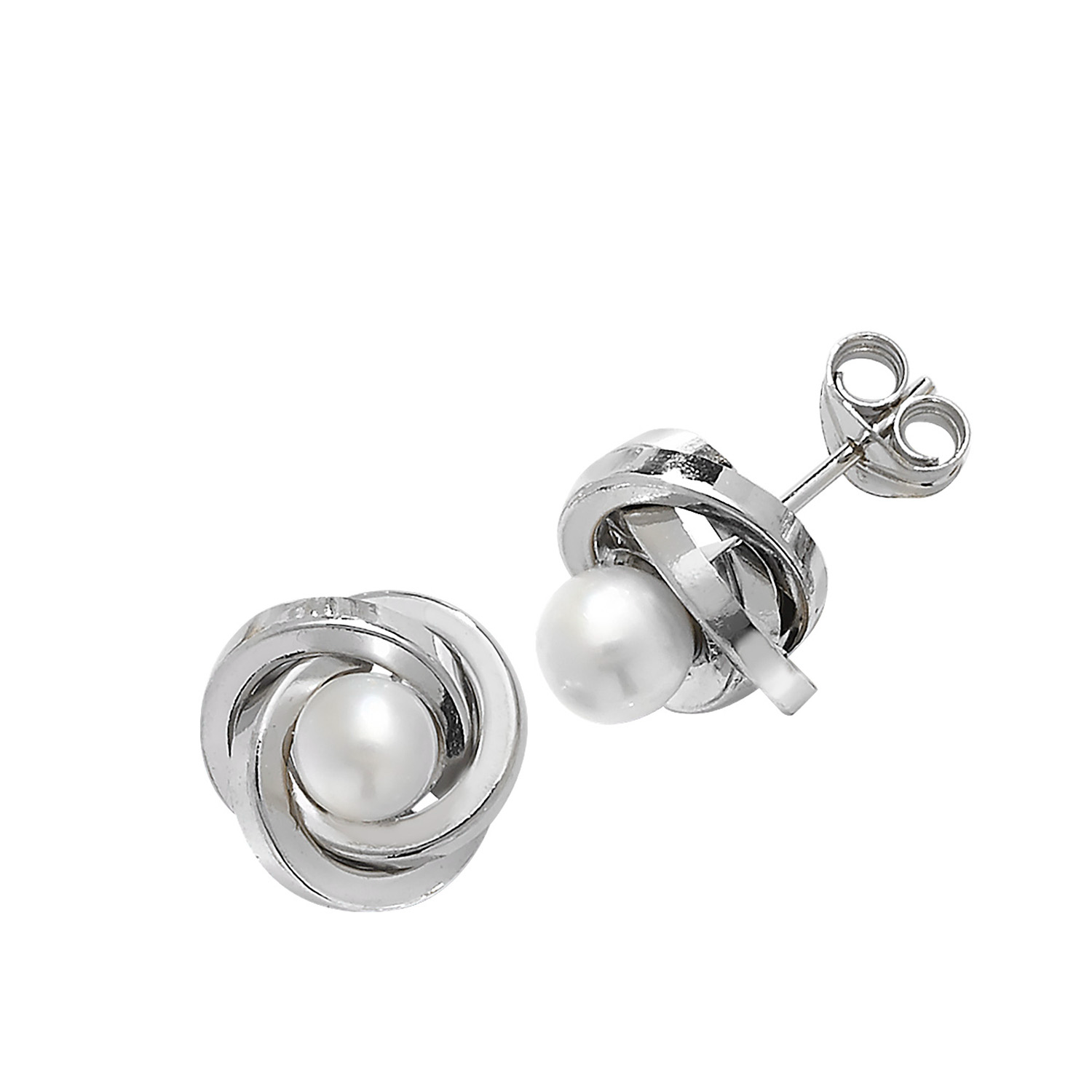 9ct White Gold Medium Pearl Orbital Stud Earrings