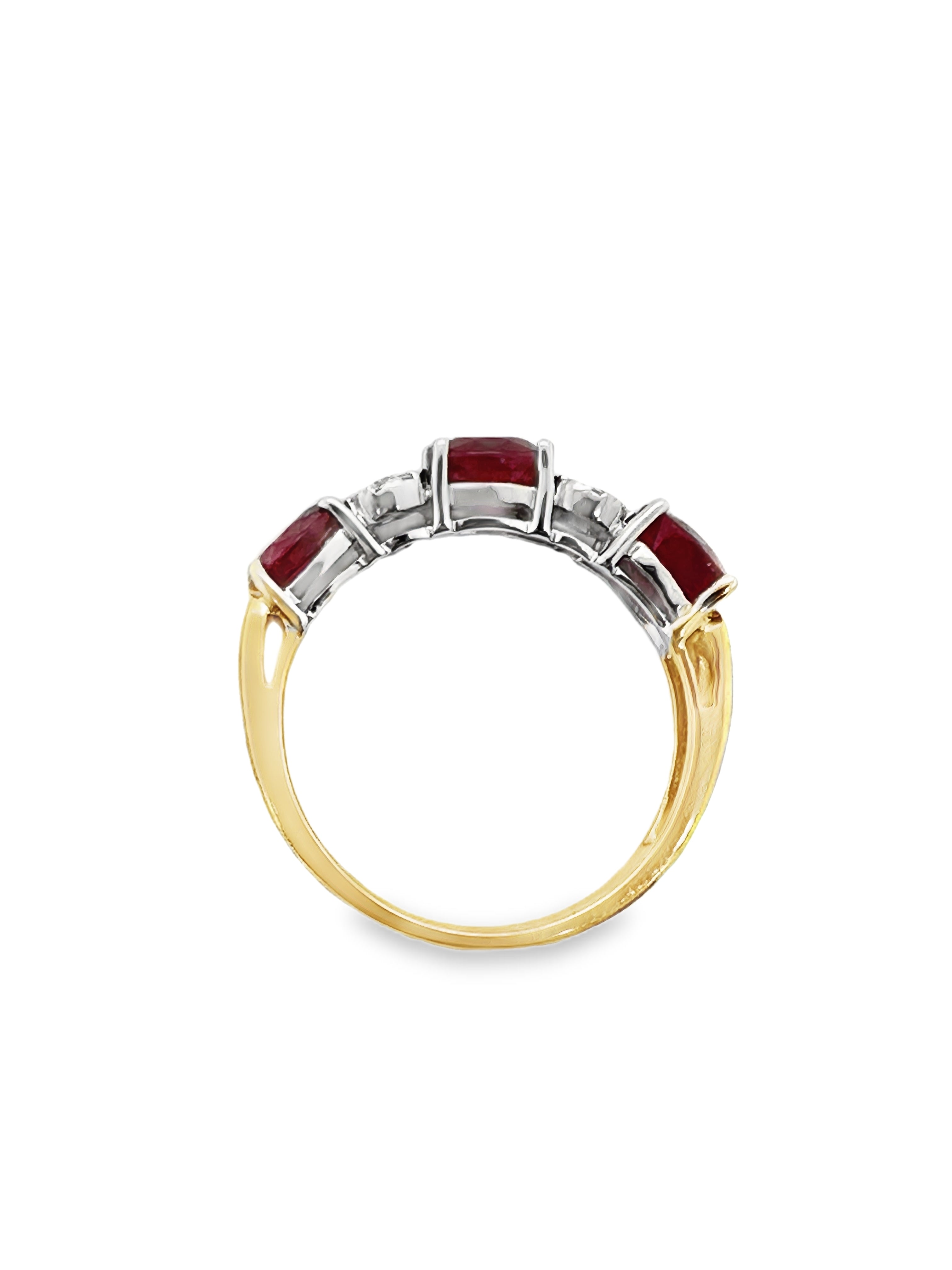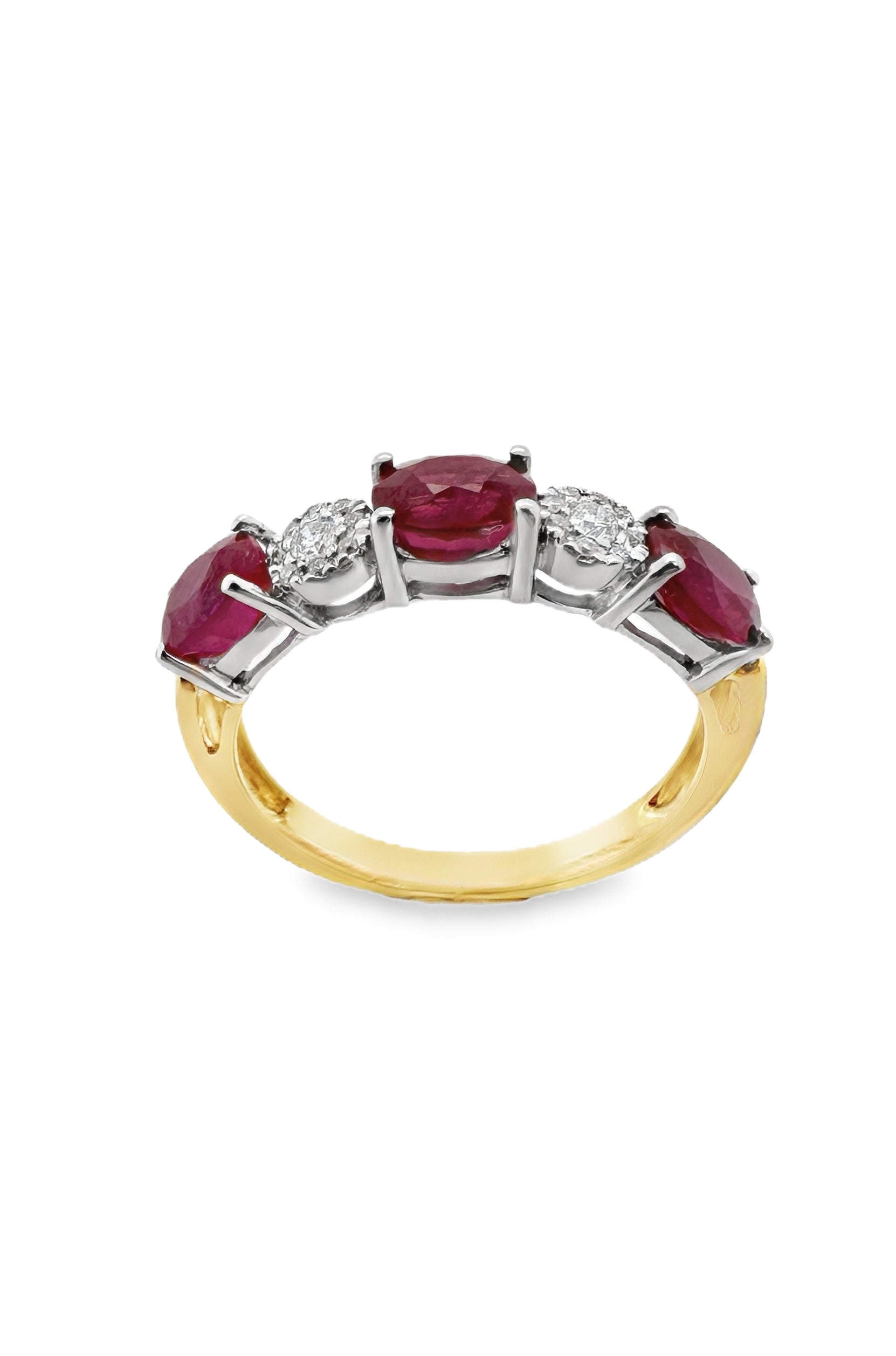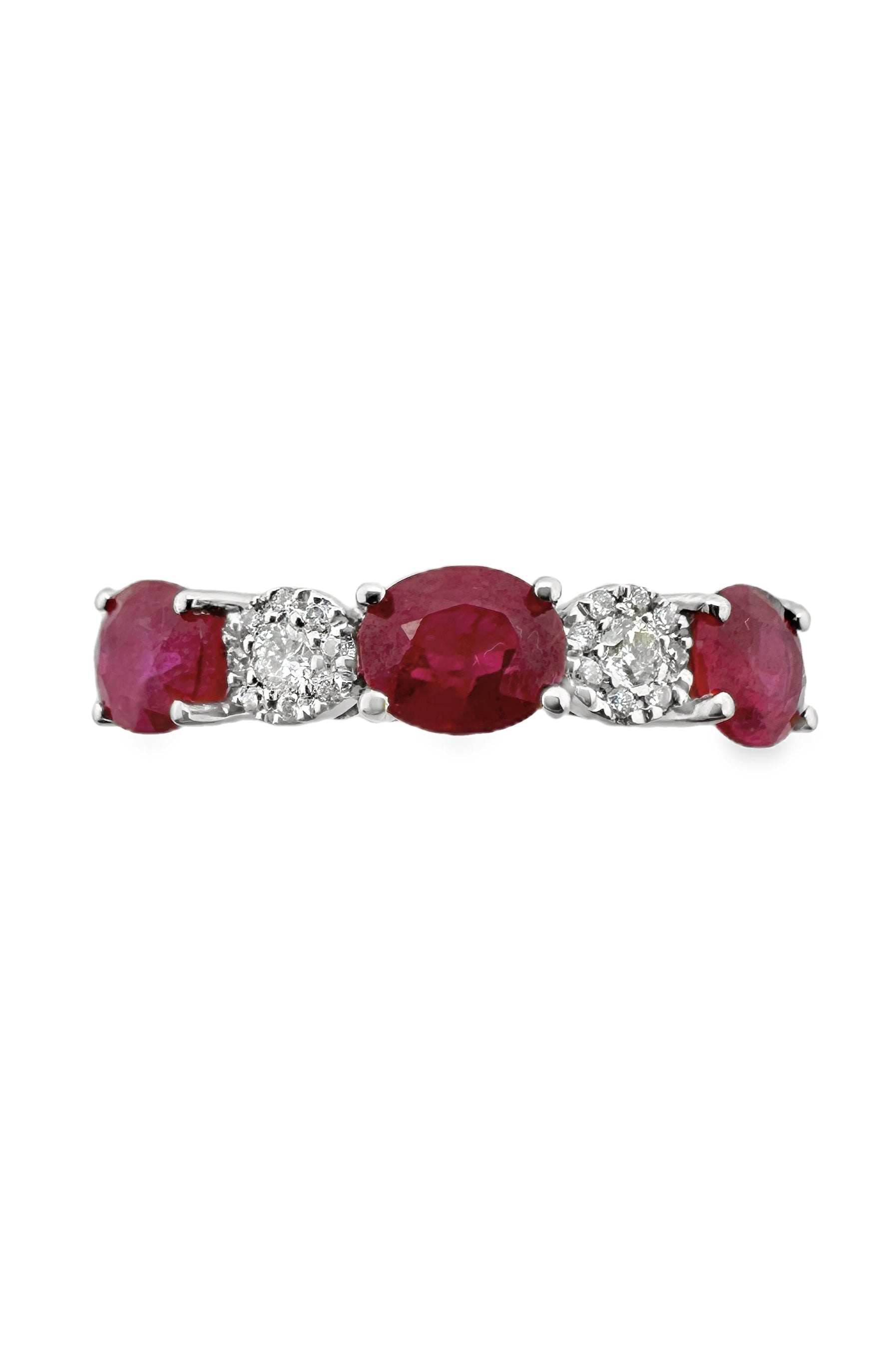 Celebrate timeless elegance with this stunning 18ct gold eternity-style ring, designed to captivate from every angle. The ring features three beautifully matched oval rubies (5x4mm each) with a total weight of 1.46 carats, symbolising passion and sophistication.
