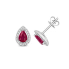 Elevate your elegance with these exquisite 9ct white Gold Ruby and Diamond cluster studs. Each earring showcases a dazzling pear-shaped red Ruby, weighing 0.48ct, surrounded by a halo of 20 brilliant-cut Diamonds. With a total Ruby weight of 0.96ct and a combined Diamond weight of 0.17ct, these studs offer a stunning contrast between the vivid Rubies and the sparkling Diamonds. The white Gold setting enhances the rich hue of the Rubies and the brilliance of the Diamonds, creating a sophisticated and captivating look.