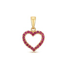 Introducing our charming 9ct yellow Gold Ruby heart pendant, a piece that radiates both elegance and romance. This beautifully crafted pendant features 22 round Rubies, meticulously prong-set along the outline of a heart design. The rich red hue of the Rubies contrasts beautifully with the warm glow of yellow Gold, creating a striking and timeless piece that symbolises love and devotion.