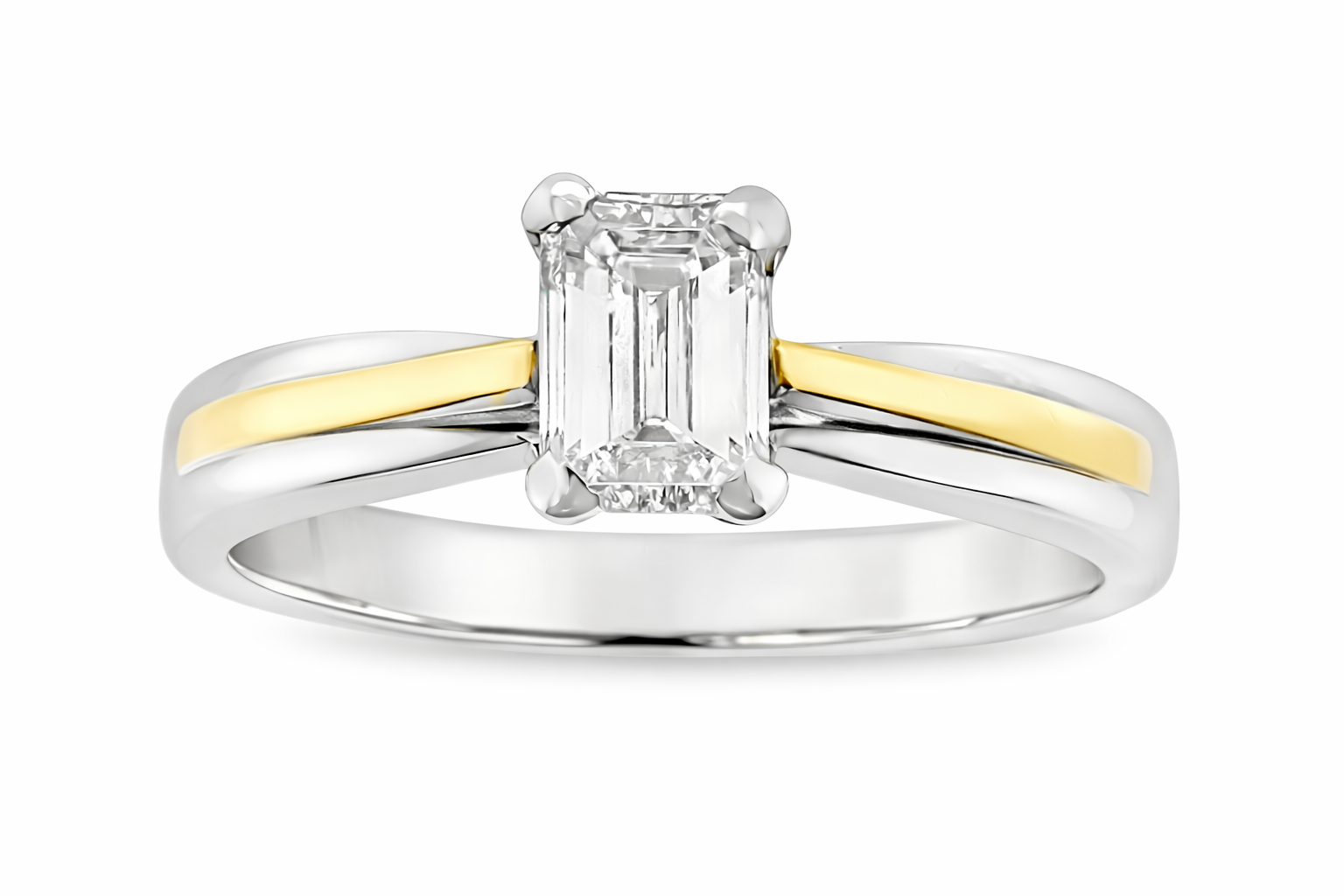 Platinum & Yellow Gold Emerald-Cut Diamond Engagement Ring – 0.40ct