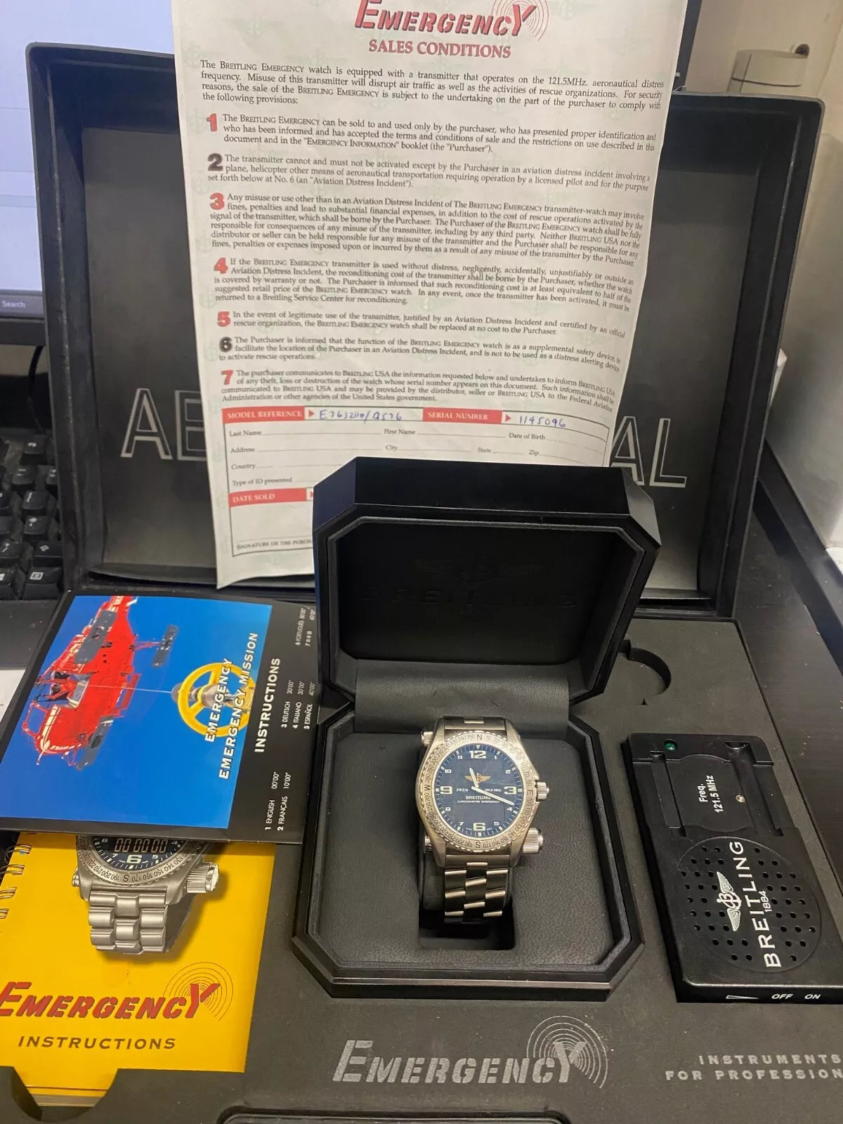 Titanium 2002 Breitling Emergency Full Set, Box And Papers Ref E76321