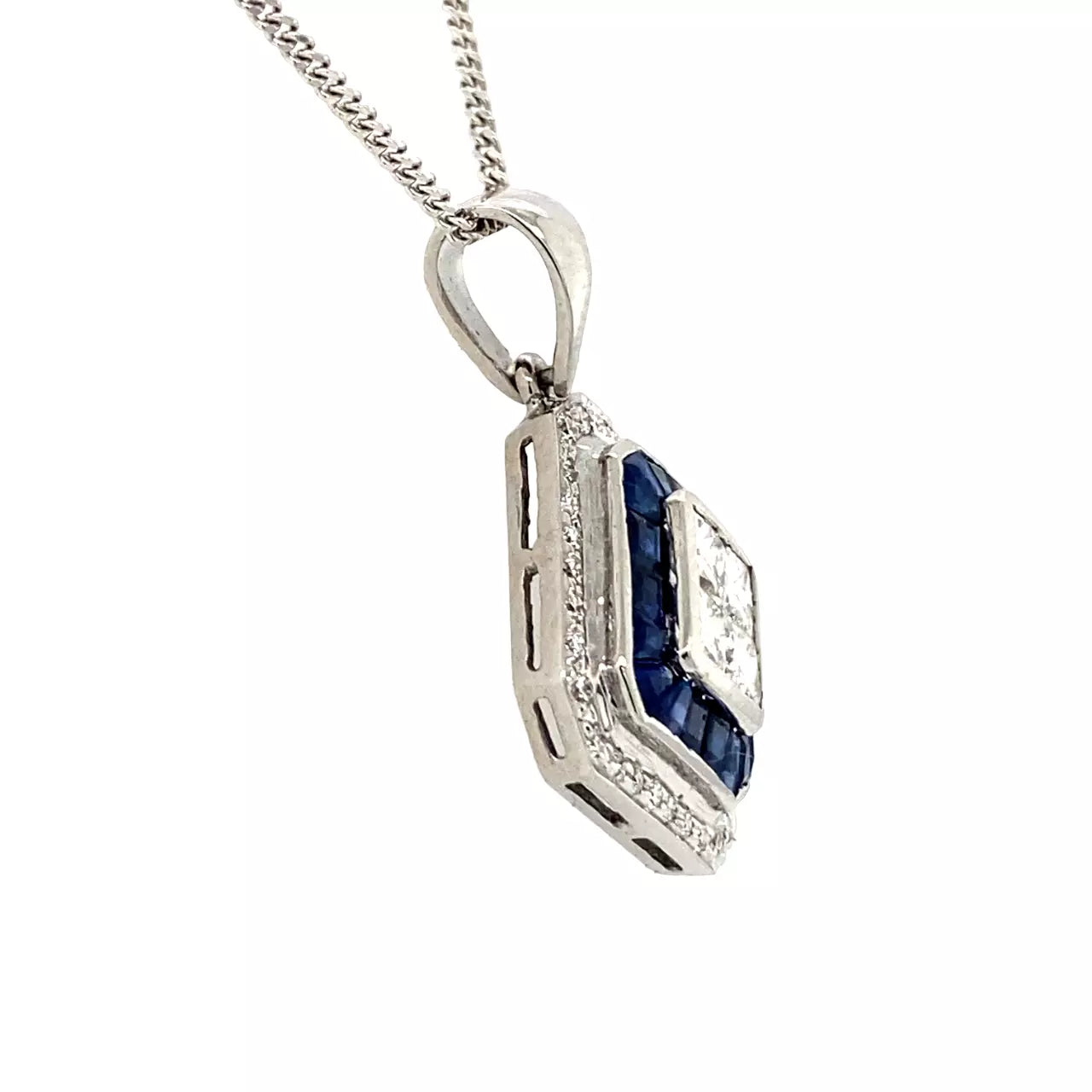 18ct White Gold Sapphire & Diamond Art Deco style pendant
