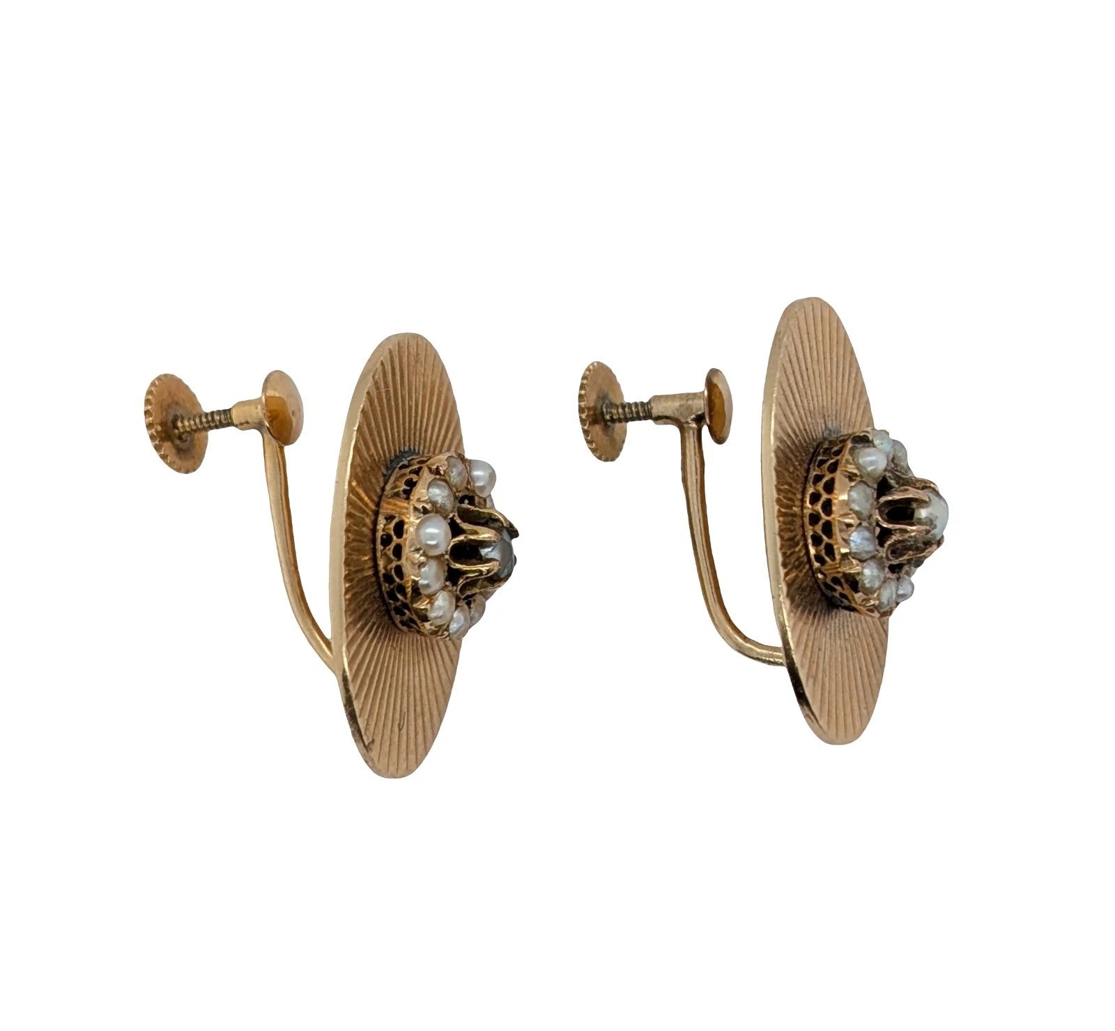 14ct Yellow Gold Screw-on Earrings with Seed Pearl Clusters