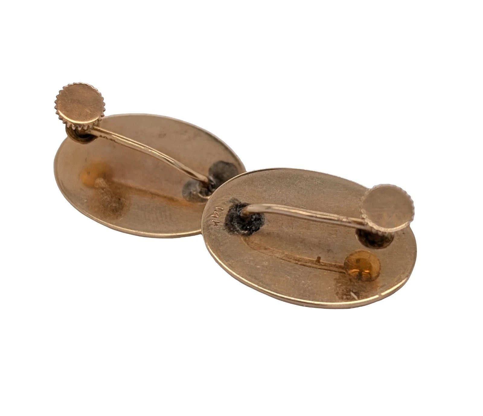 Although not formally hallmarked, both earrings are stamped 14ct on the back and screw stems, adding to their character and collectability.