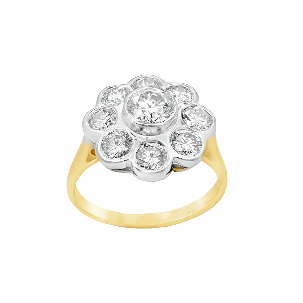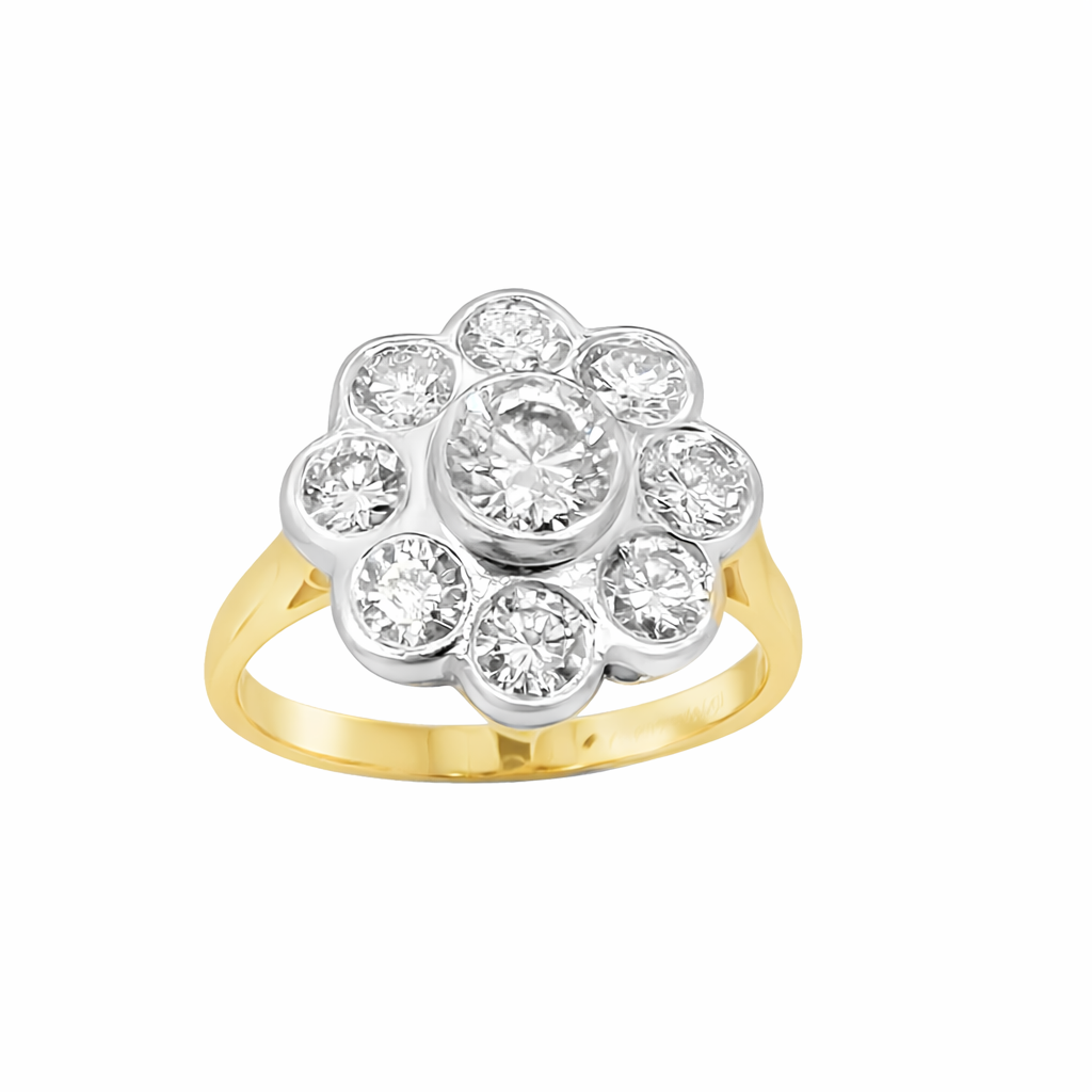 18ct Yellow Gold Halo Cluster Diamond Ring 1.20ct