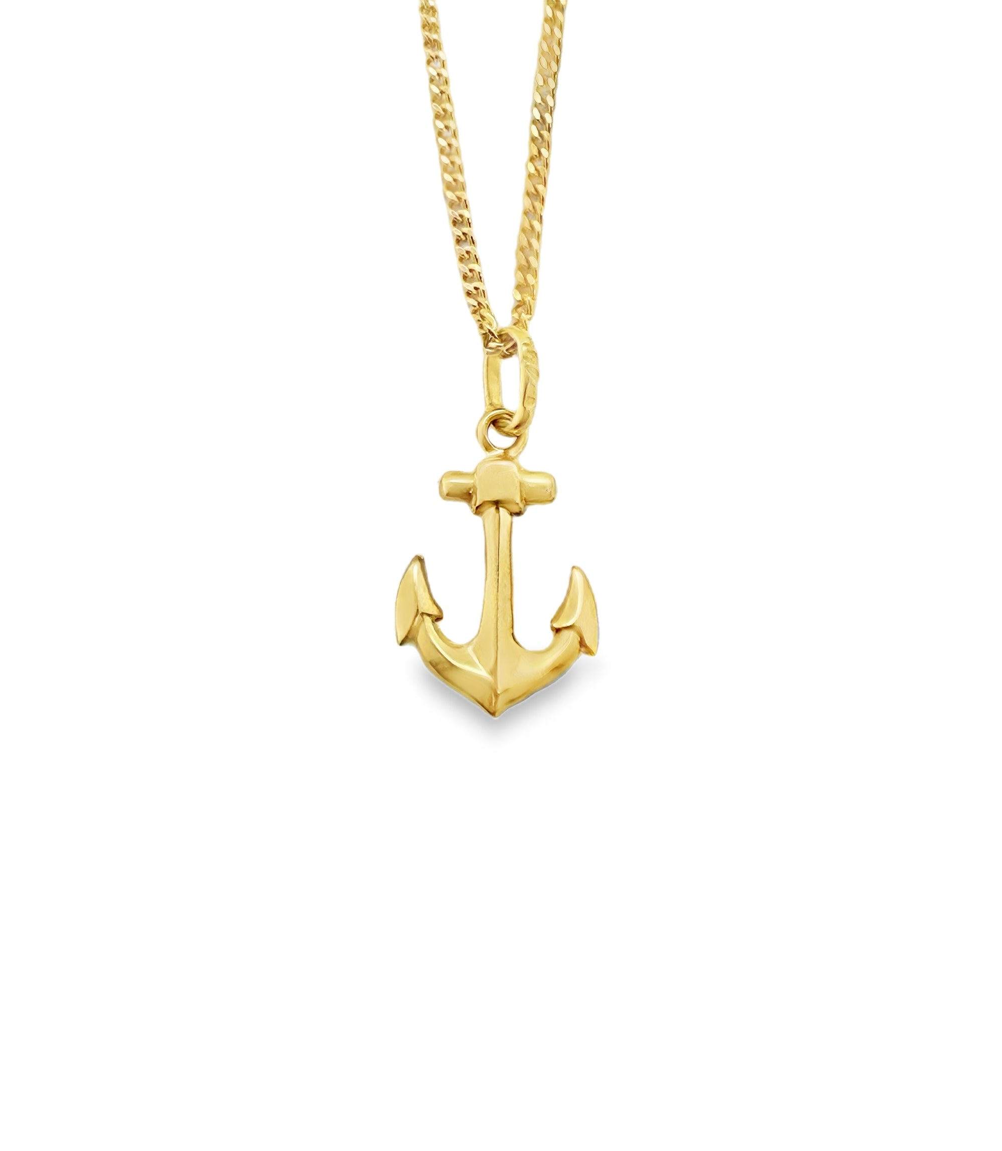9ct Yellow Gold Anchor Pendant & Curb Chain