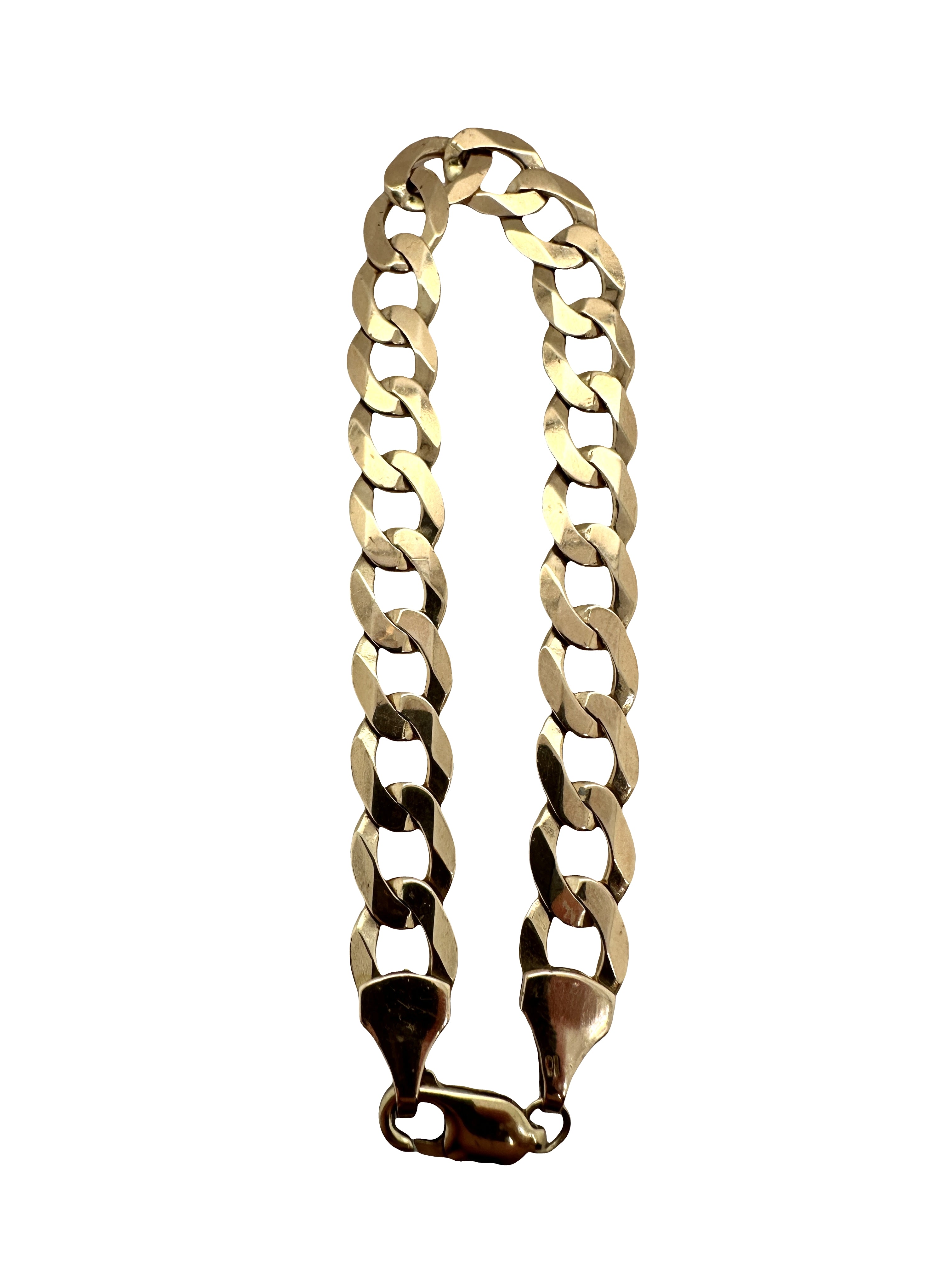 Crafted from solid 9ct yellow gold, this classic curb bracelet is a timeless piece of jewellery that adds effortless style to any look. Weighing 14.8 grams, it has a substantial feel without being overly heavy, making it ideal for everyday wear or special occasions.
