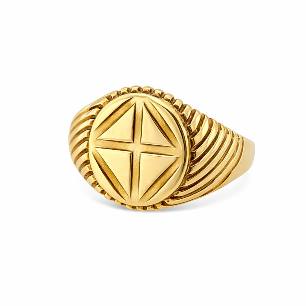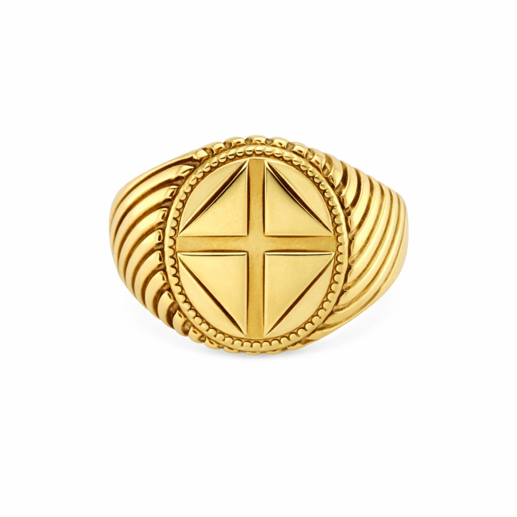 9ct Yellow Gold 1989 Cross Oval Signet Ring