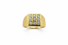 A classic and stylish 9ct yellow gold signet ring, featuring a bold square head set with nine cubic zirconia stones arranged in a clean 3x3 grid formation. The stones offer brilliant sparkle, beautifully contrasting against the warm tone of the gold.