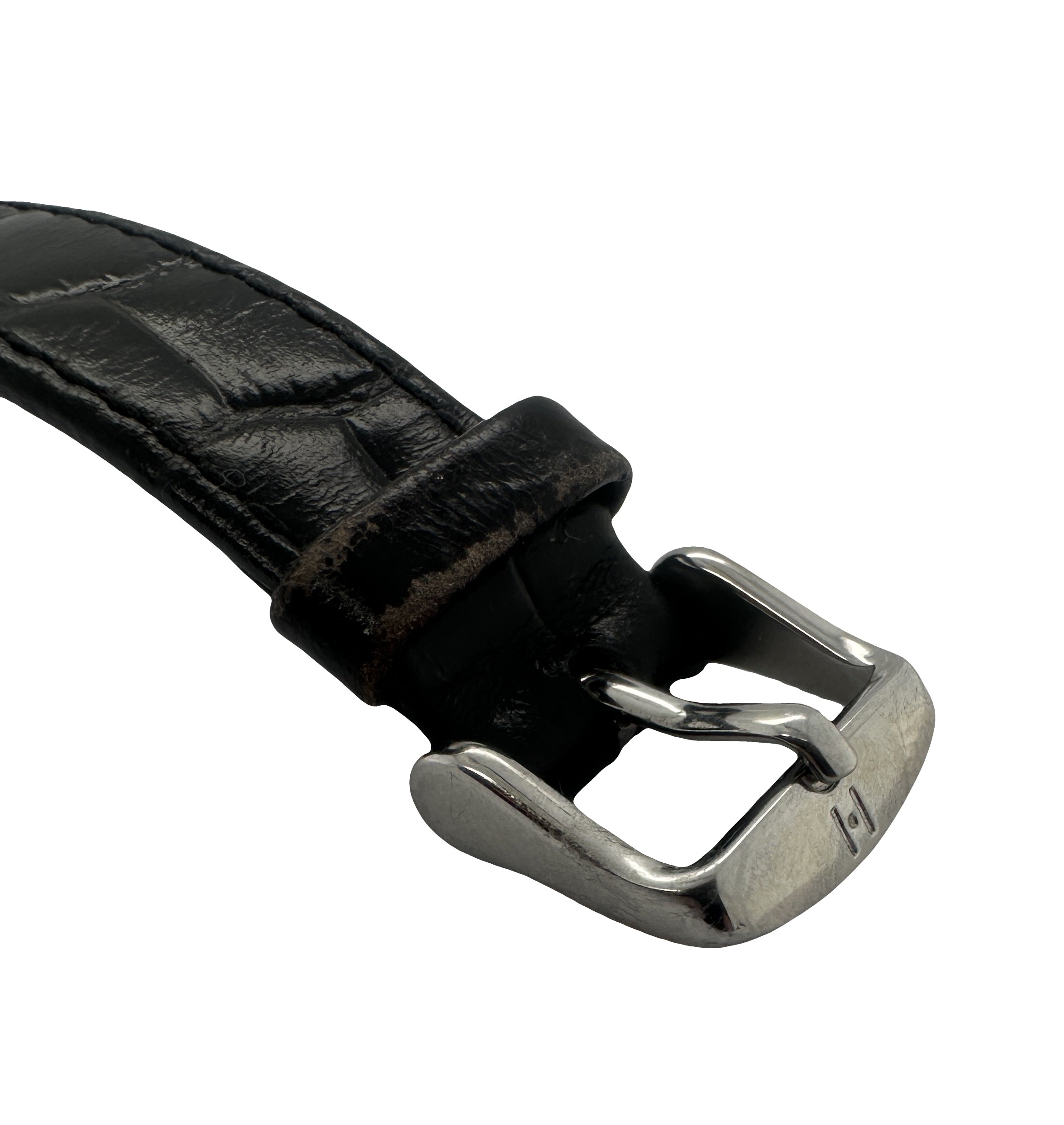 Fitted with a black leather strap and the original Baume & Mercier-signed buckle, this piece remains all original, preserving its authentic charm. Its clean lines and balanced proportions make it a versatile choice for both formal and casual occasions.