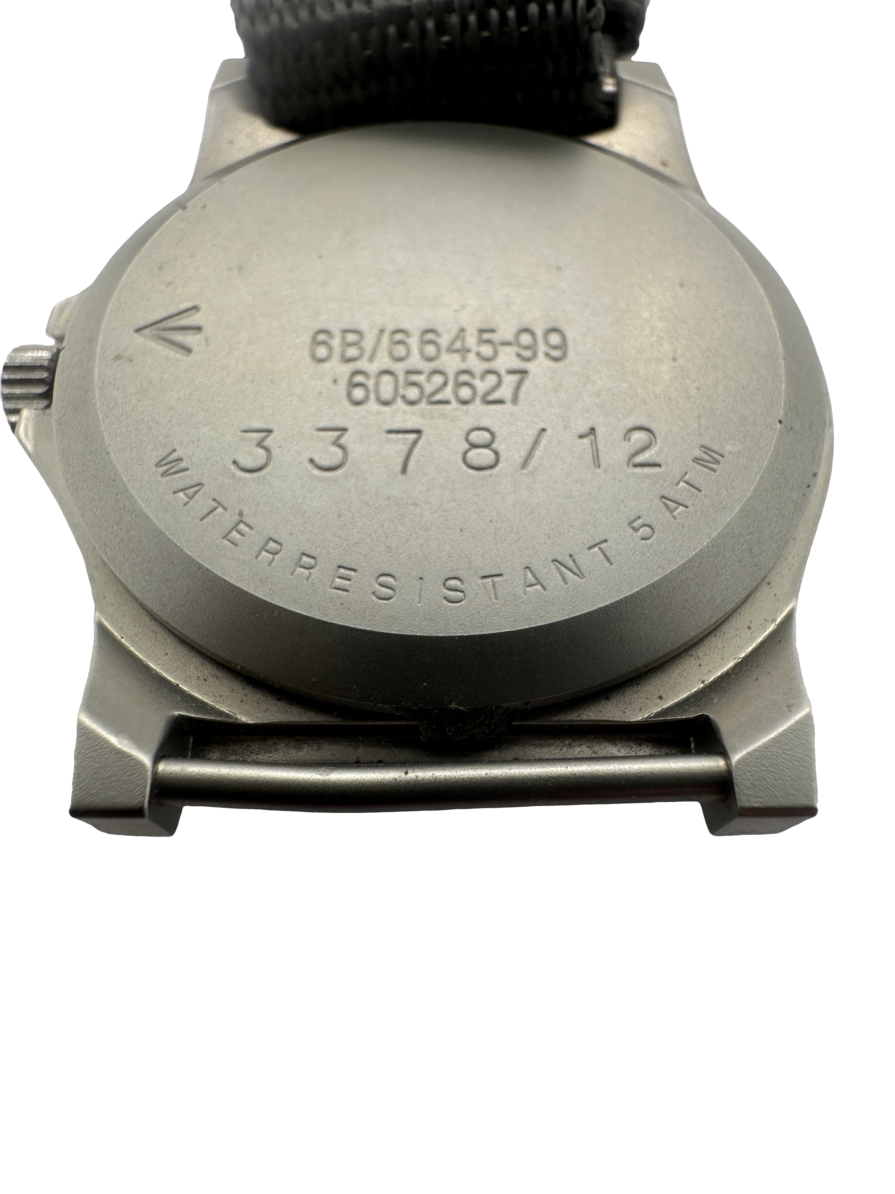 This authentic CWC (Cabot Watch Company) Military Watch, model 6B/8645-99 6052627 3378/12, is a genuine piece of British Royal Air Force history. Designed to meet MOD (Ministry of Defence) specifications, this quartz-powered pilot’s watch embodies rugged reliability and military precision.