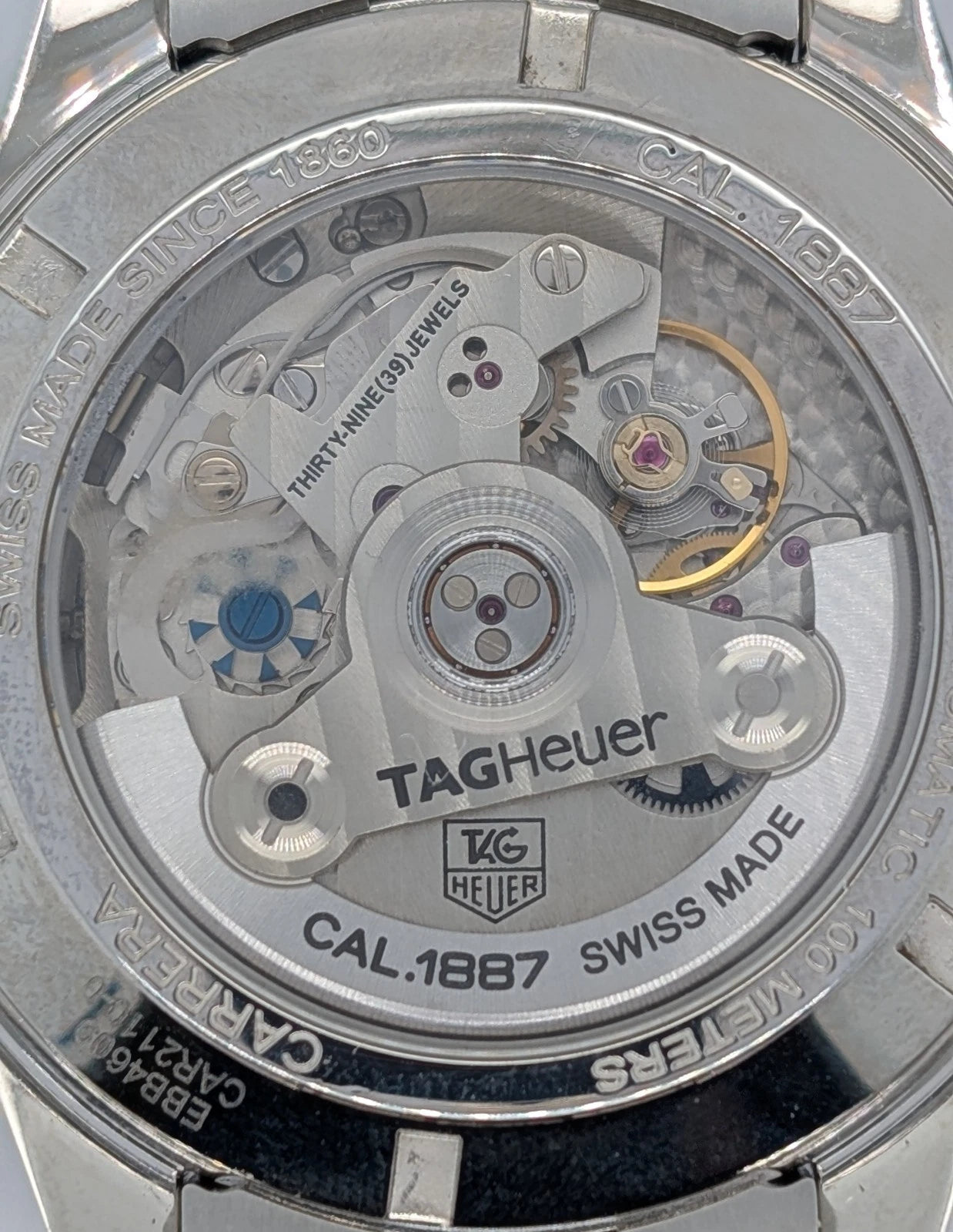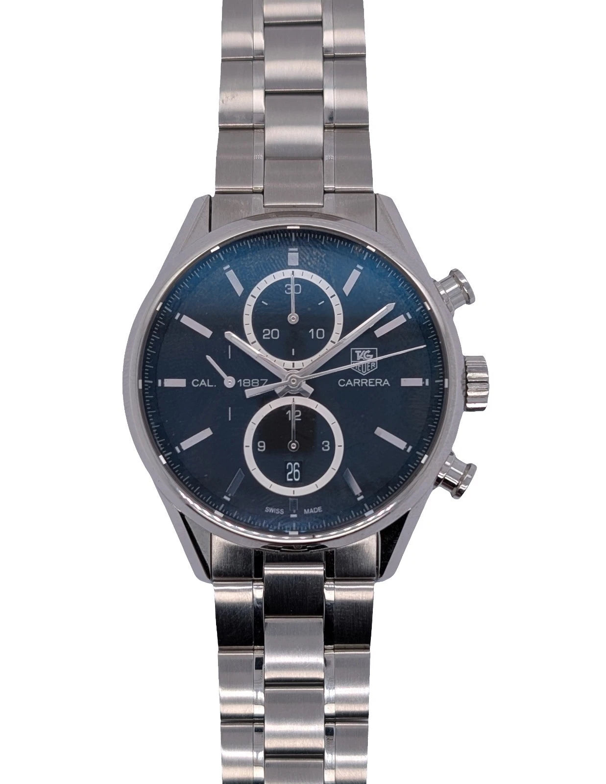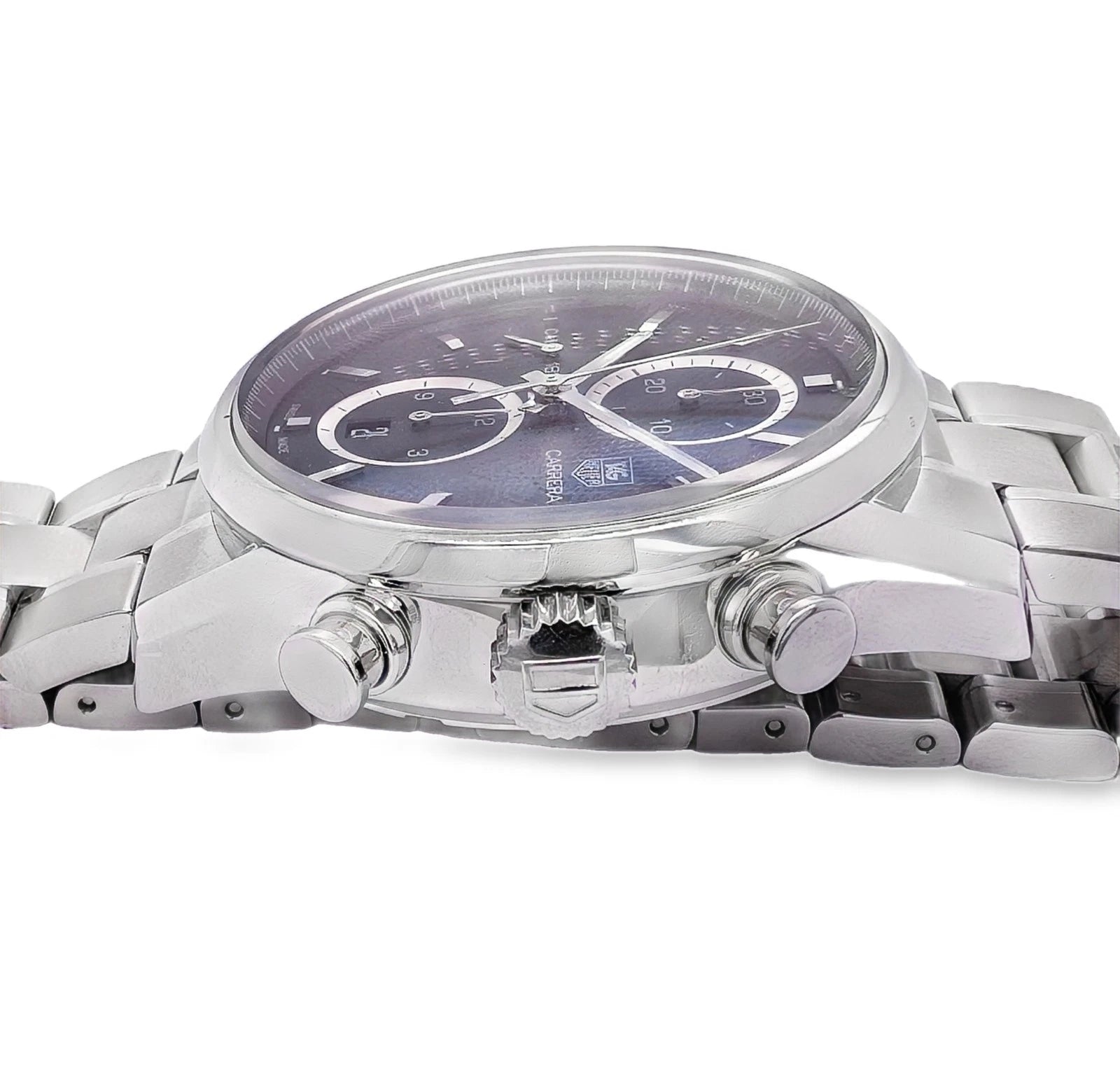 Up for sale is a beautiful TAG Heuer Carrera Calibre 1887 chronograph, reference CAR2110-0. This is a sophisticated and sporty timepiece from one of Switzerland’s most respected watchmakers, featuring TAG Heuer’s in-house Calibre 1887 automatic movement. It’s a watch that effortlessly combines performance, elegance, and versatility.