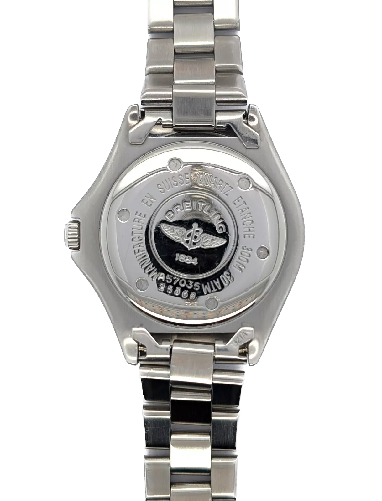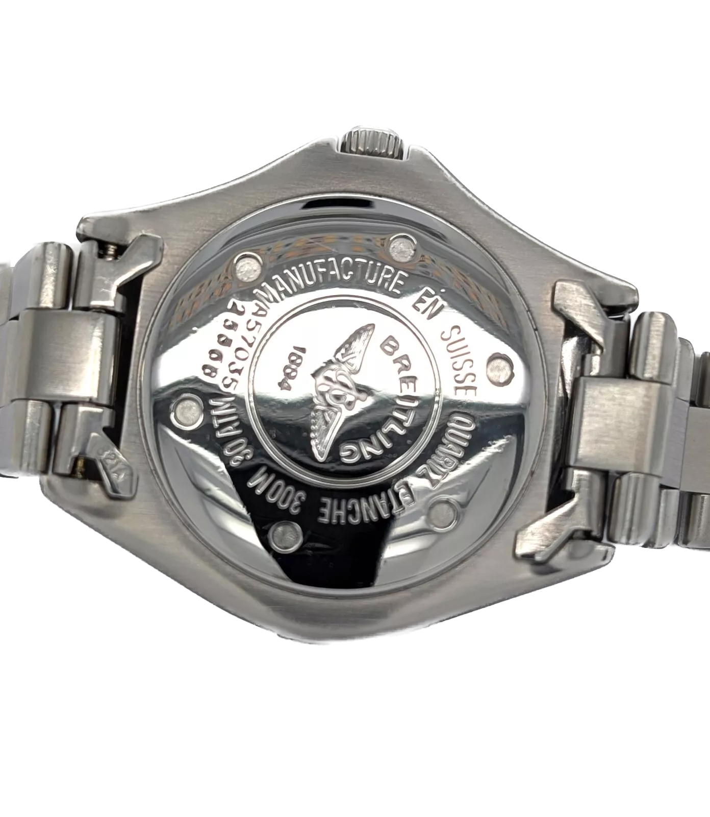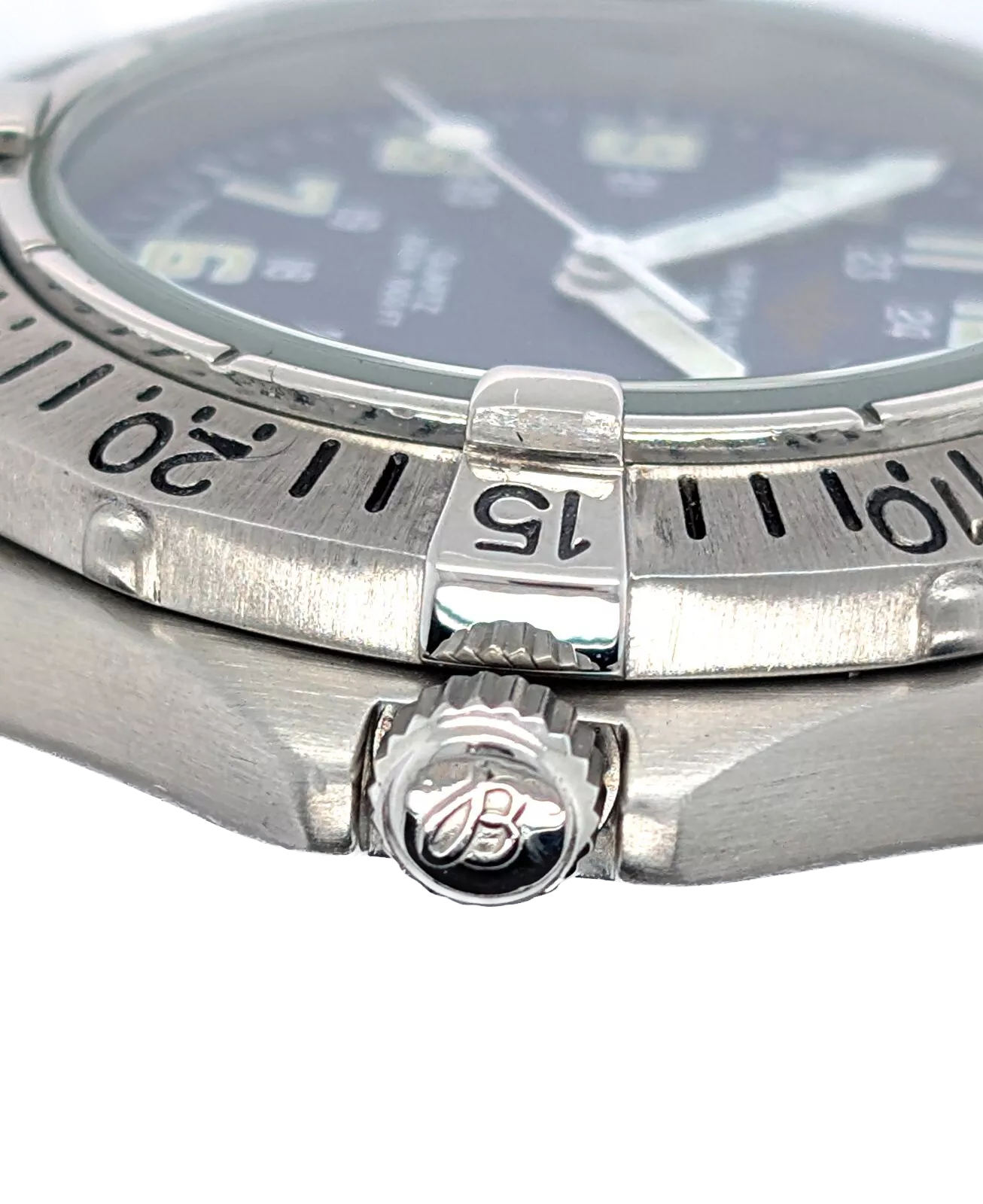 Up for sale is a stunning Breitling Colt Quartz (Ref. A57035), a robust and stylish Swiss timepiece designed for precision and durability. Featuring a 38mm stainless steel case, a unidirectional rotating bezel, and a highly legible dial with luminous markers, this watch embodies the spirit of aviation and adventure. Powered by a reliable quartz movement, it offers incredible accuracy and hassle-free maintenance.