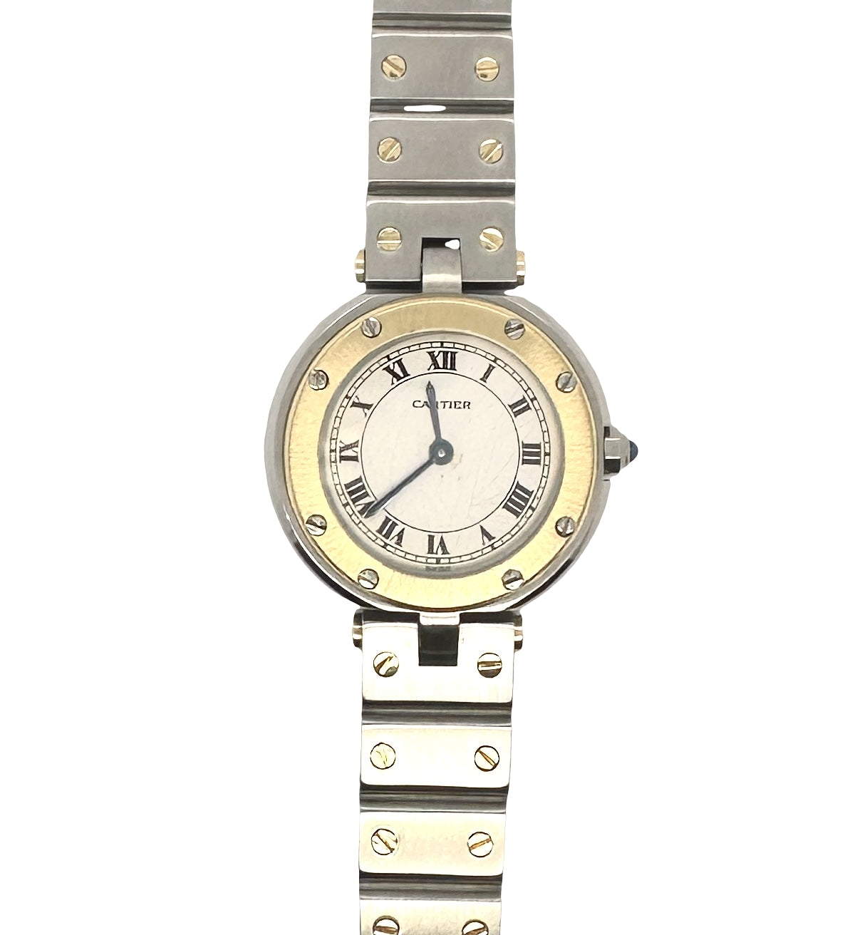 The watch is powered by a reliable quartz movement, offering precise timekeeping with minimal maintenance. Its clean, balanced dial reflects Cartier’s iconic aesthetic, making it effortlessly versatile for both everyday wear and special occasions.